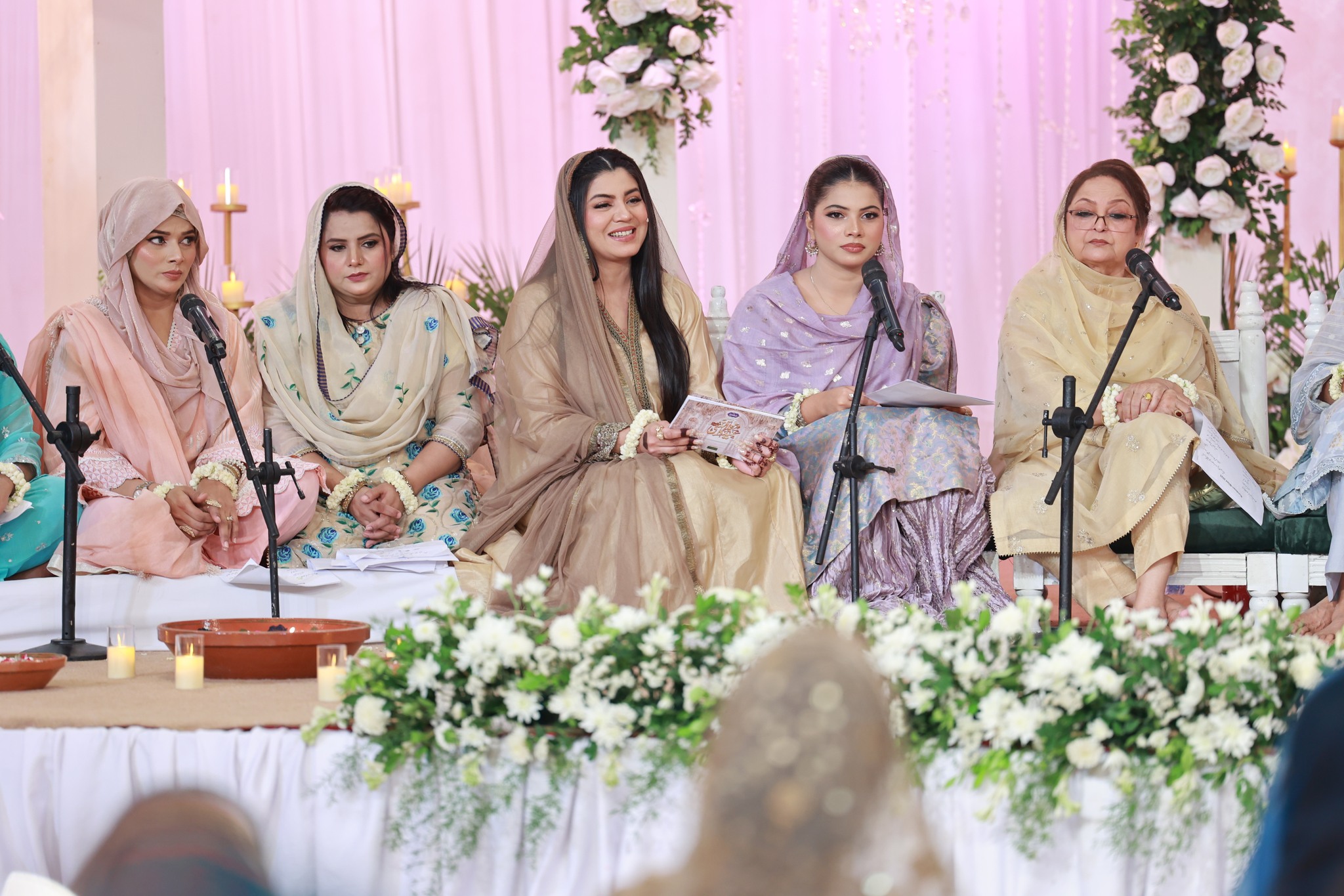 The Mehfil featured inspiring naat recitations by Tahreem Muneeba, Talat Hashmi, Bushra Ansari, Samina Kamal, Maha Aslam, Sandiya, and Ayat Sheikh. A thoughtful bayan delivered by Khushbakht Shujaat encouraged attendees to strengthen their spiritual connection through reciting durood and seek Allah’s blessings through prayer and reflection.
