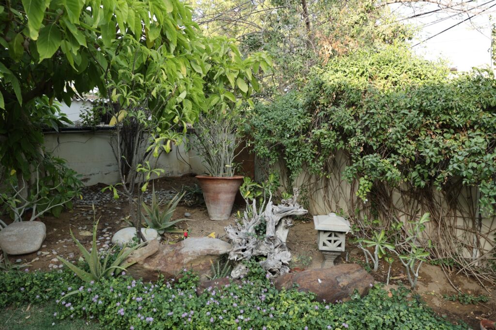 Not at all, I wouldn’t claim that! My husband is the one with the real gardening instinct. I simply guide him on the overall look. We’ve always preferred natural beauty rather than overly shaped plants. A tree should look like a tree, with its natural form and growth. We love greenery more than anything overly decorative. Seasonal flowers are lovely, but we value permanent plants and natural growth. My husband is into perfumery, so he loves fragrant plants like raat ki rani and motiya, you can smell them as soon as you enter. We sit in the garden depending on the weather. On pleasant days, especially weekends, we spend a lot of time outdoors, watching the children play or simply enjoying the fresh air.