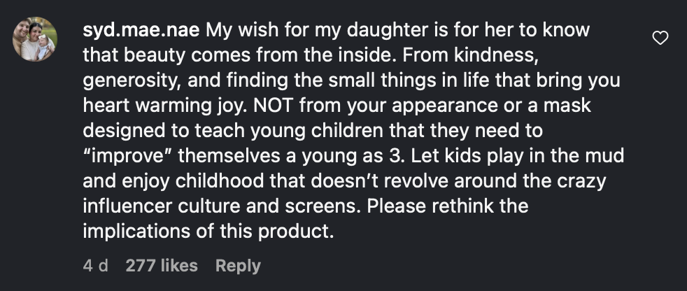 Part of the reaction to Rini also reflects fatigue with the hyper-commercialisation of beauty. Children can enjoy sensory, playful moments without entering a cycle of buying. A slice of cucumber on the eyes or a simple yoghurt or oatmeal mask offers the same excitement without turning care into something packaged. What unsettles many parents is how easily even gentle forms of play are reframed as consumer habits, positioning children as future customers before they understand the implications.