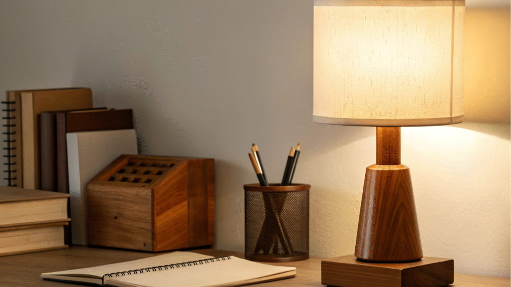 Light is instrumental in setting the mood. Natural light, when you can get it, helps your body fall into rhythm. A warm desk lamp can do the same when the day turns heavy. Harsh overhead bulbs make you rush; soft light invites you to stay. You will feel the difference without noticing when it happens.
