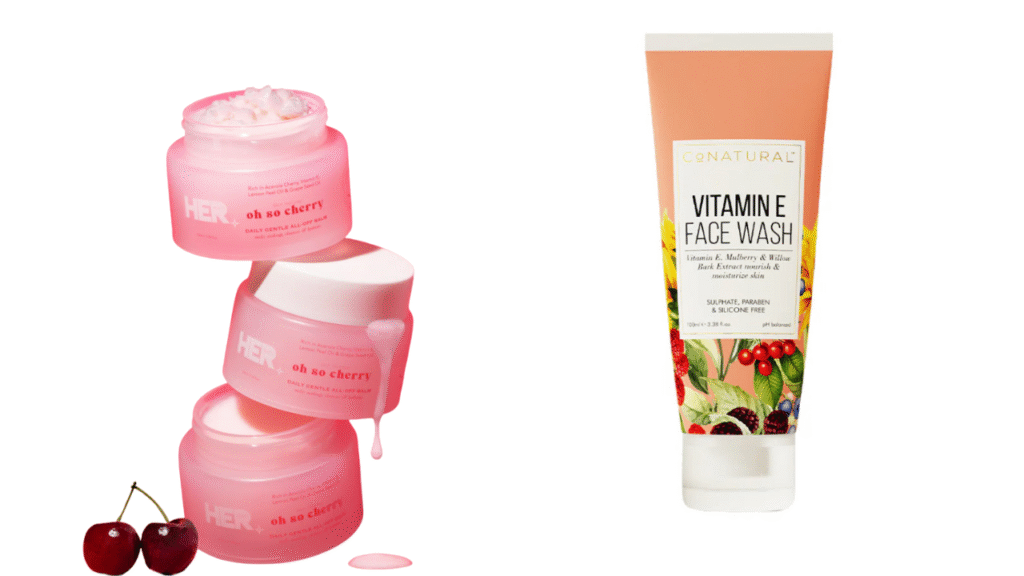Local pick: Oh So Cherry Makeup Removing Balm by HER Beauty for the first cleanse, and CoNatural ’s Vitamin E Face Wash for the second.